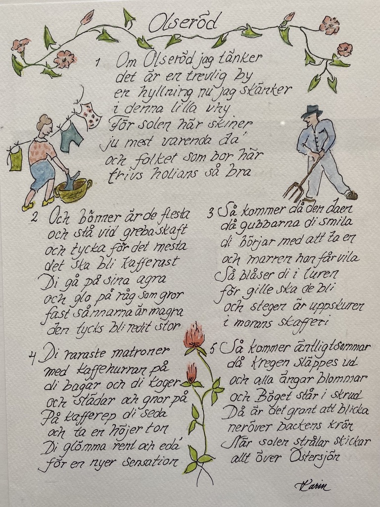 Vid vår visning av fotoutställningen Olseröd 1951 överraskade Karin Hillqvist oss med att läsa upp en fin vers som hon skrivit.